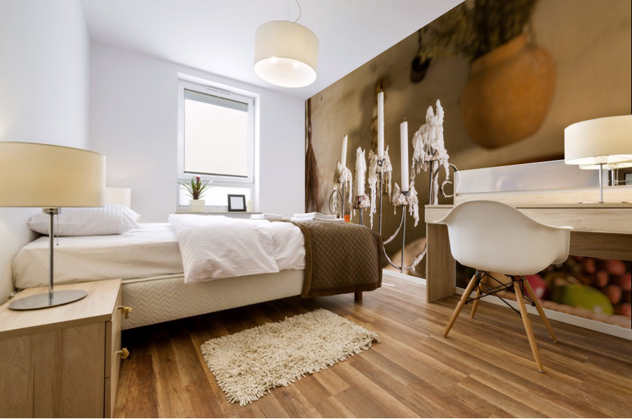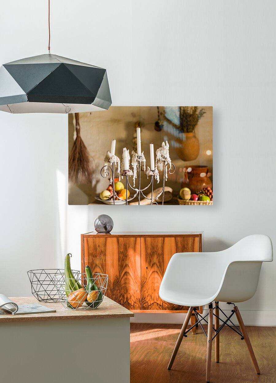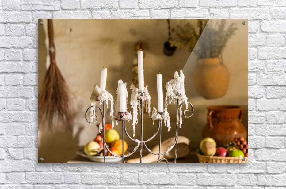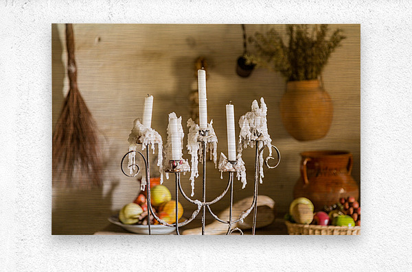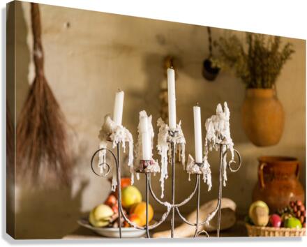 ABOUT THIS ARTWORK: CANDLES IN TRADITIONAL KITCHEN IN MISSION IN CALIFORNIA