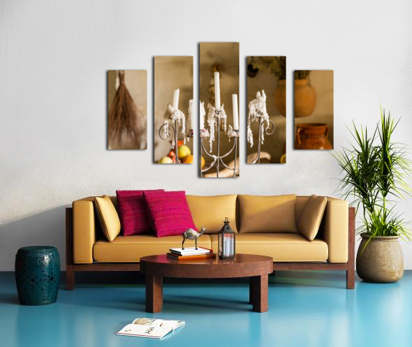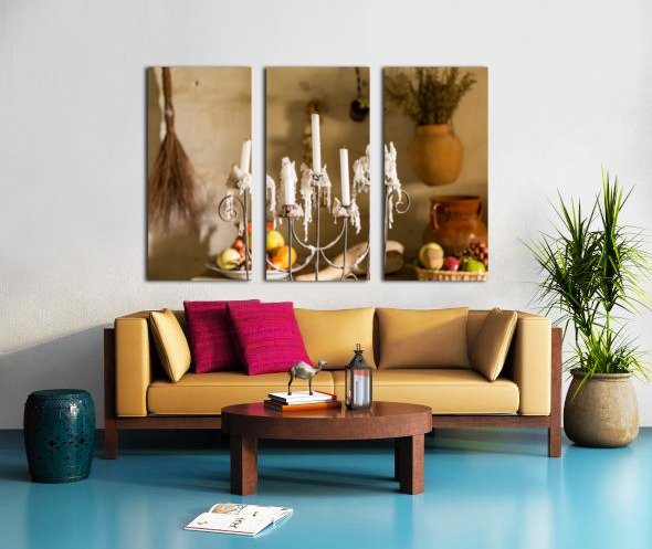 Get this artwork "Candles in traditional kitchen in mission in California" in a framed print.
