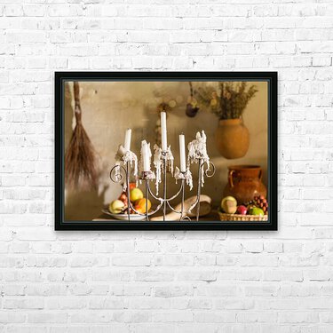 Candles in traditional kitchen in mission in California Picture Frame Printing