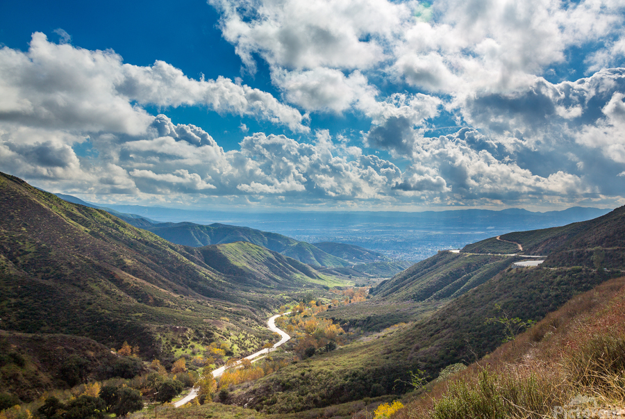 View down valley towards San Bernadino in California from Route 18 Rim of the World Highway