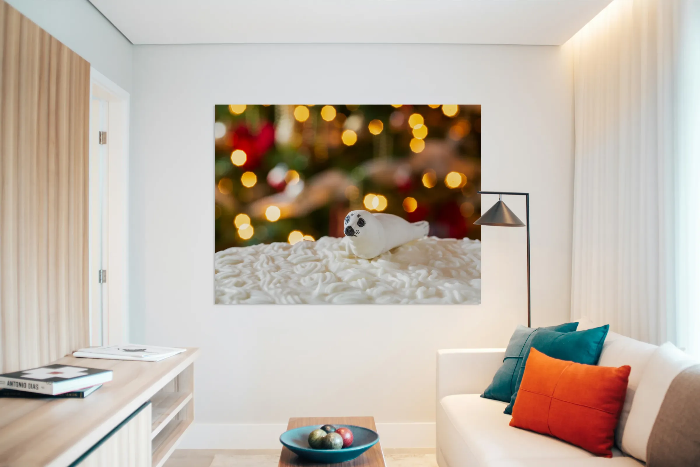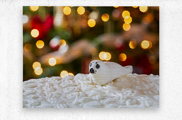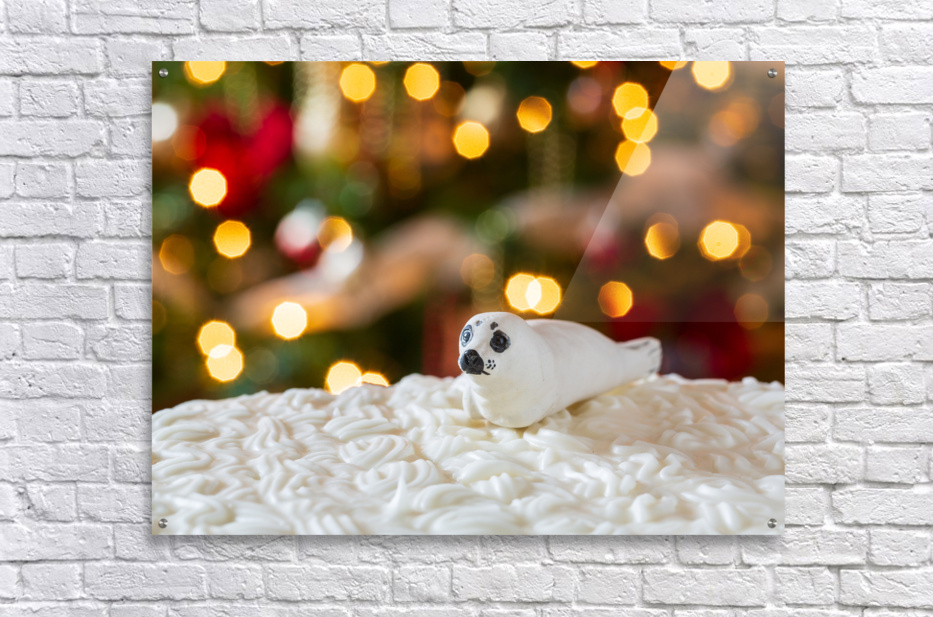 ABOUT THIS ARTWORK: SEAL ON CHRISTMAS CAKE WITH TREE LIGHTS