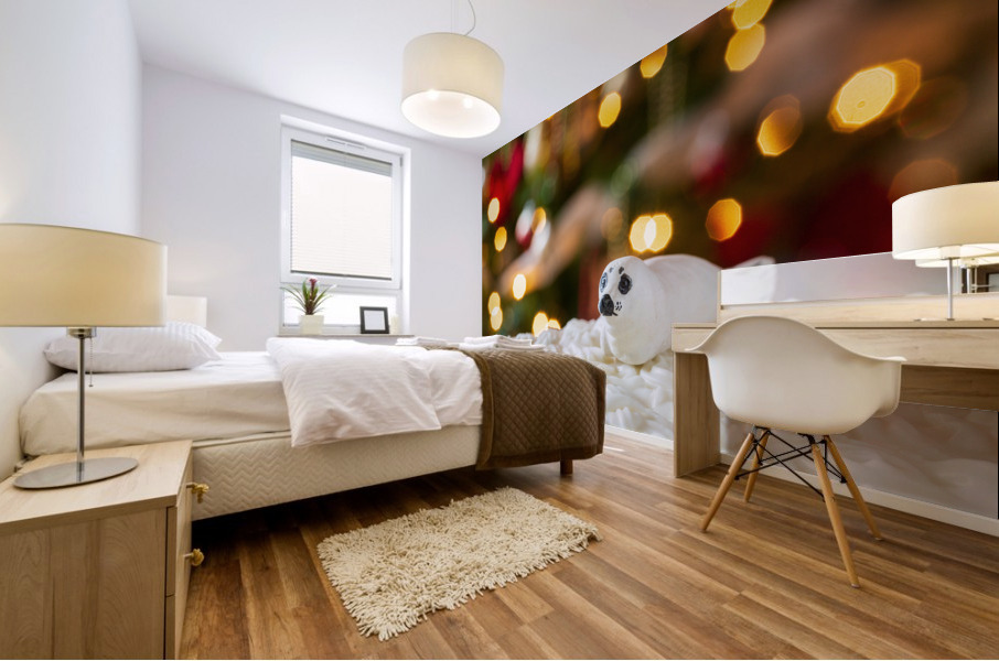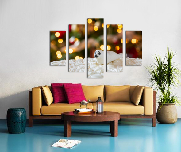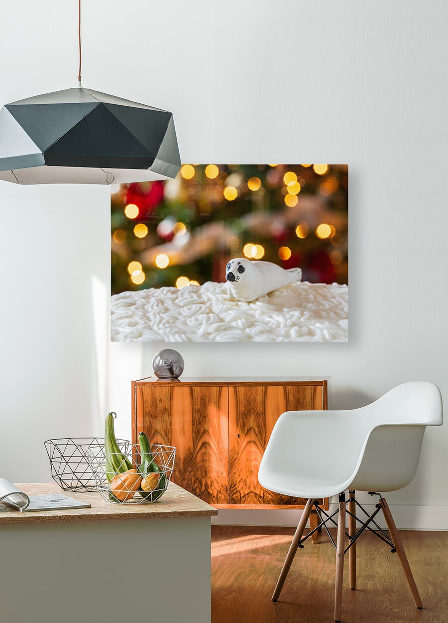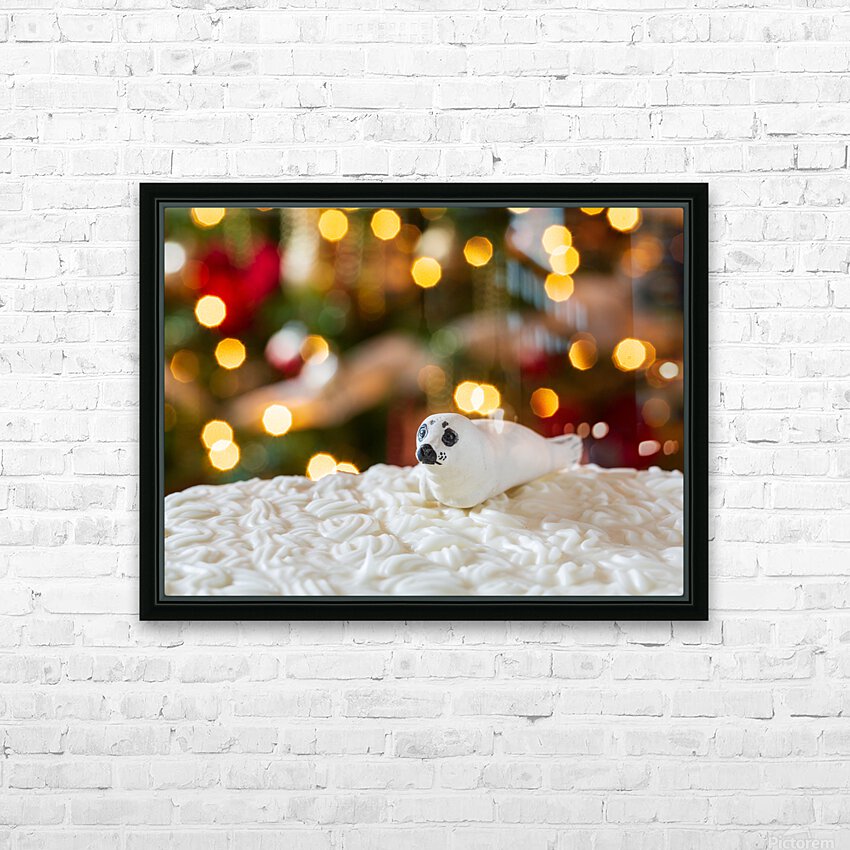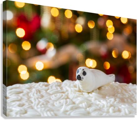 Get this artwork "Seal on Christmas cake with tree lights" in a framed print.