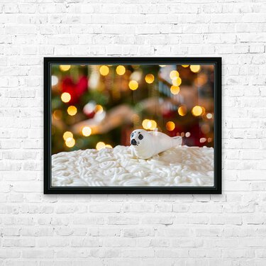 Seal on Christmas cake with tree lights Frame print