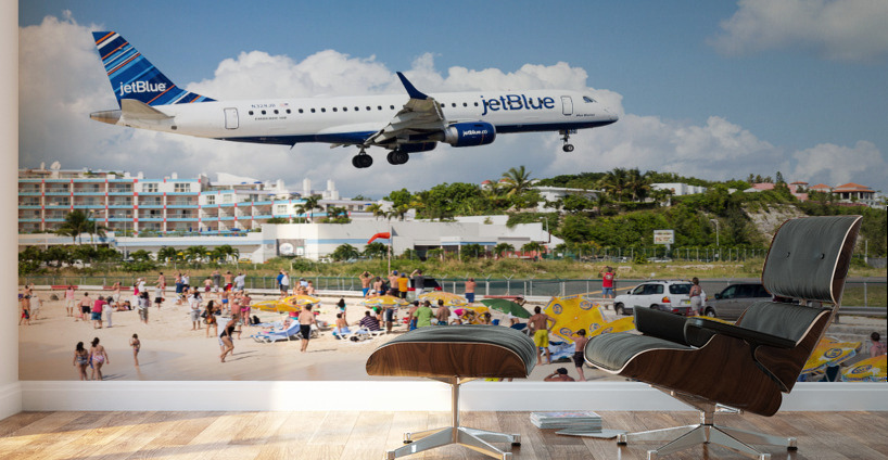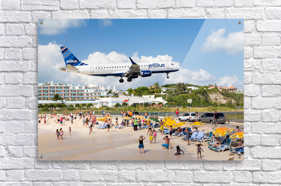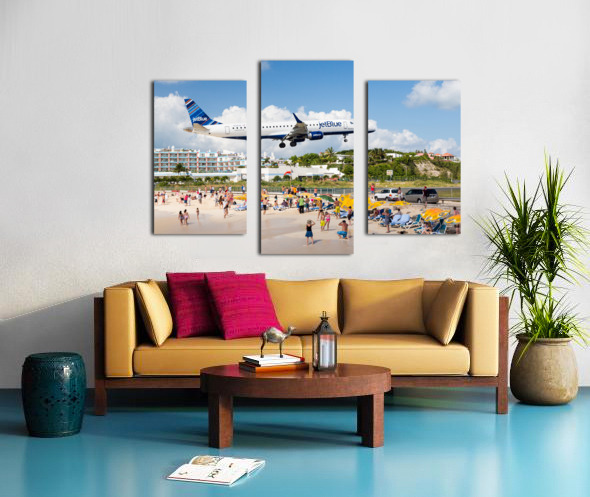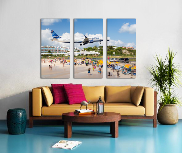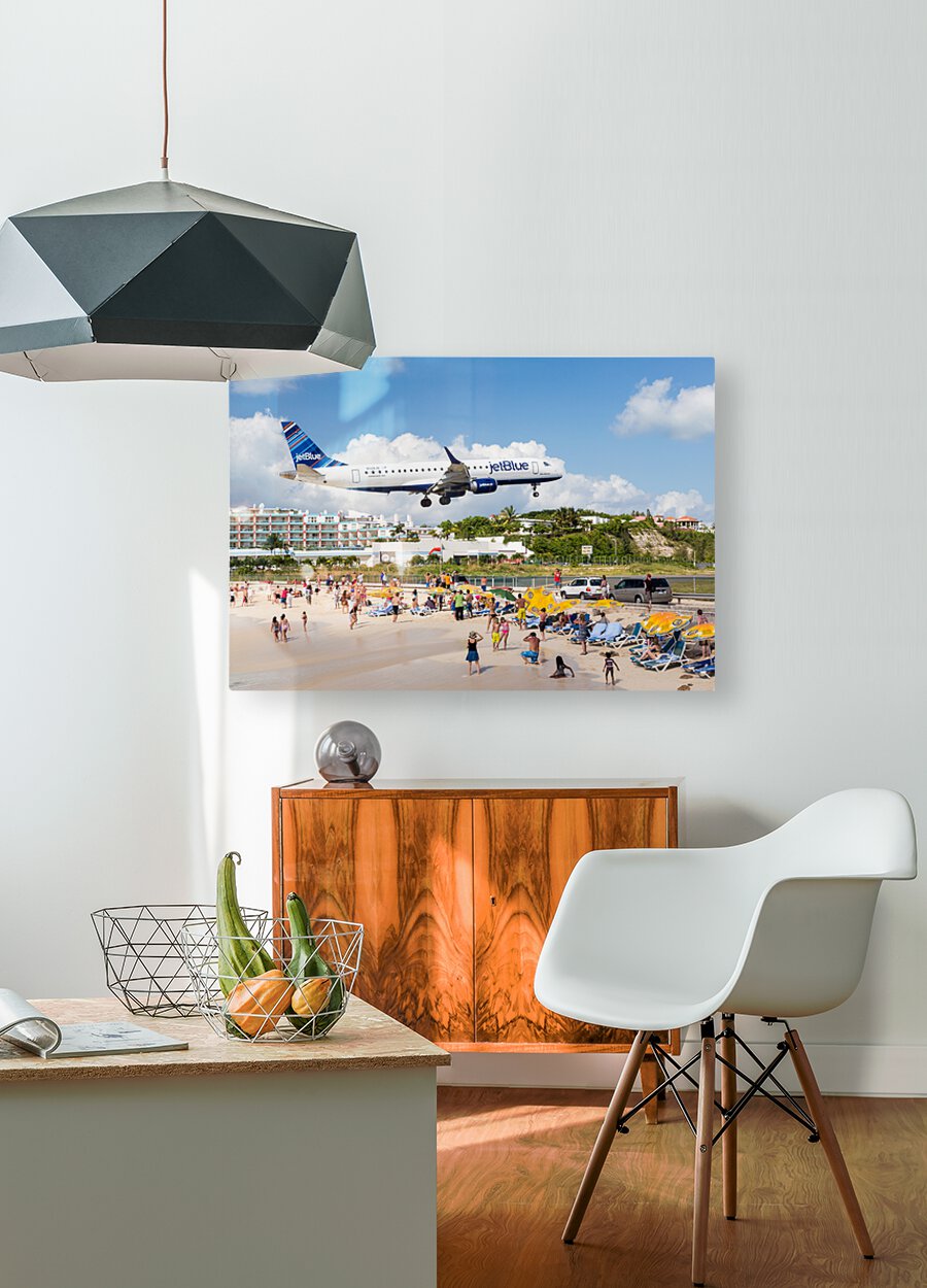 Get this artwork "Jet Blue Airplane lands at Princess Juliana airport St Martin" in a framed print.