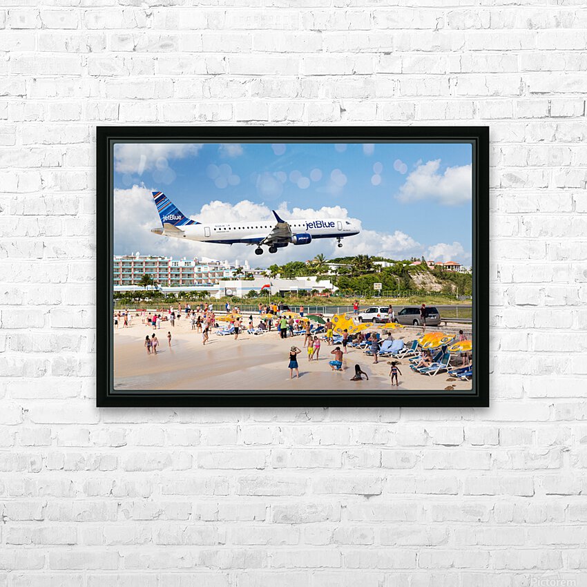 Jet Blue Airplane lands at Princess Juliana airport St Martin Picture Frame Printing