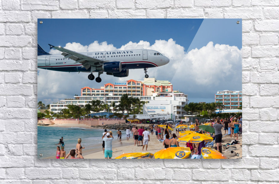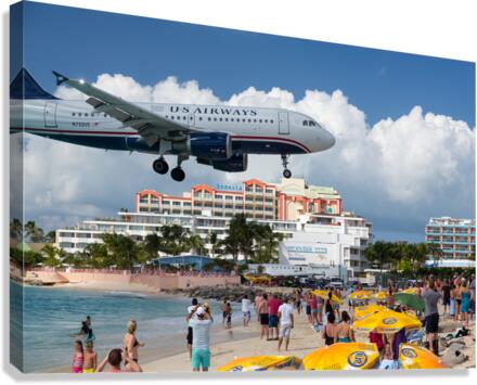 ABOUT THIS ARTWORK: US AIRWAYS PLANE LANDS AT PRINCESS JULIANA AIRPORT ST MARTIN