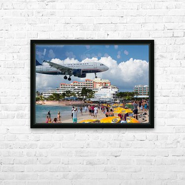 US Airways plane lands at Princess Juliana airport St Martin Picture Frame Printing