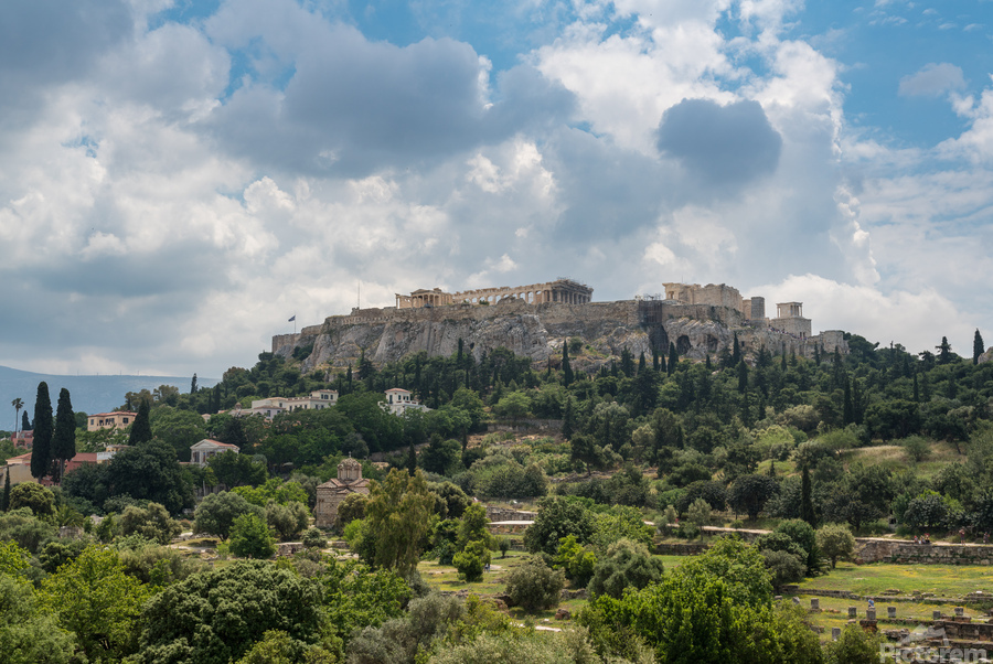ABOUT THIS ARTWORK: ACROPOLIS HILL RISES ABOVE GREEK AGORA IN ATHENS