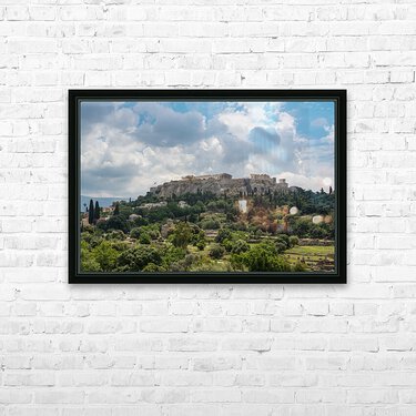 Acropolis hill rises above Greek Agora in Athens Frame print