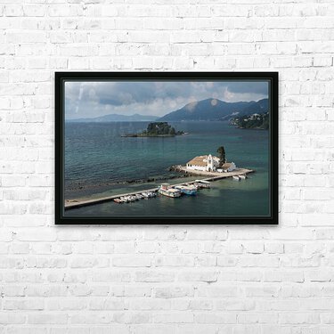 Vlacherna monastery near the airport on island of Corfu Frame print