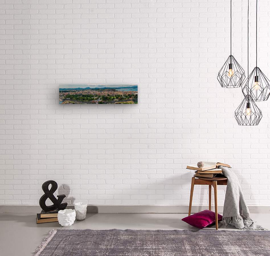Wide panorama of  Kerkyra on island Corfu  Wood print