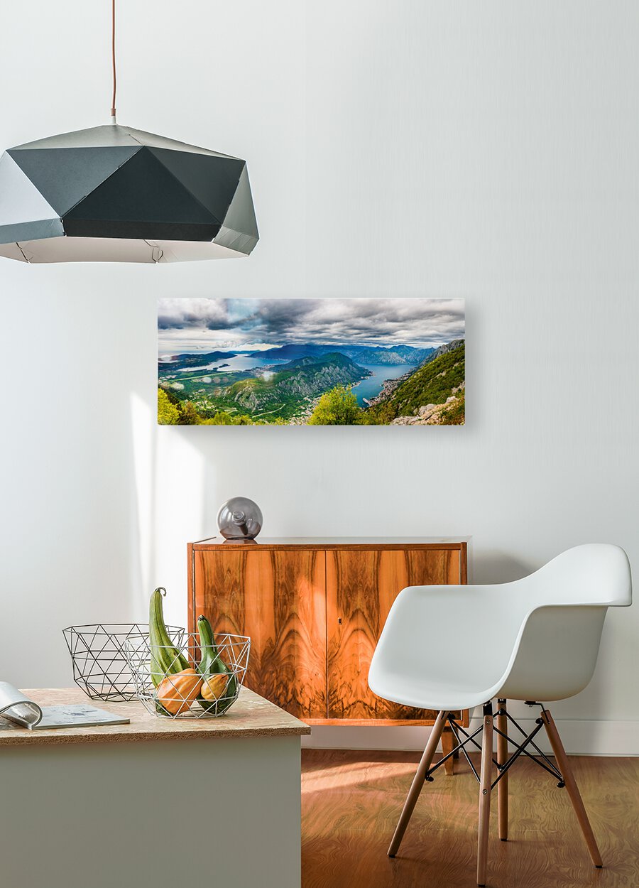 View of Bay of Kotor from Serpentine road  Wood print