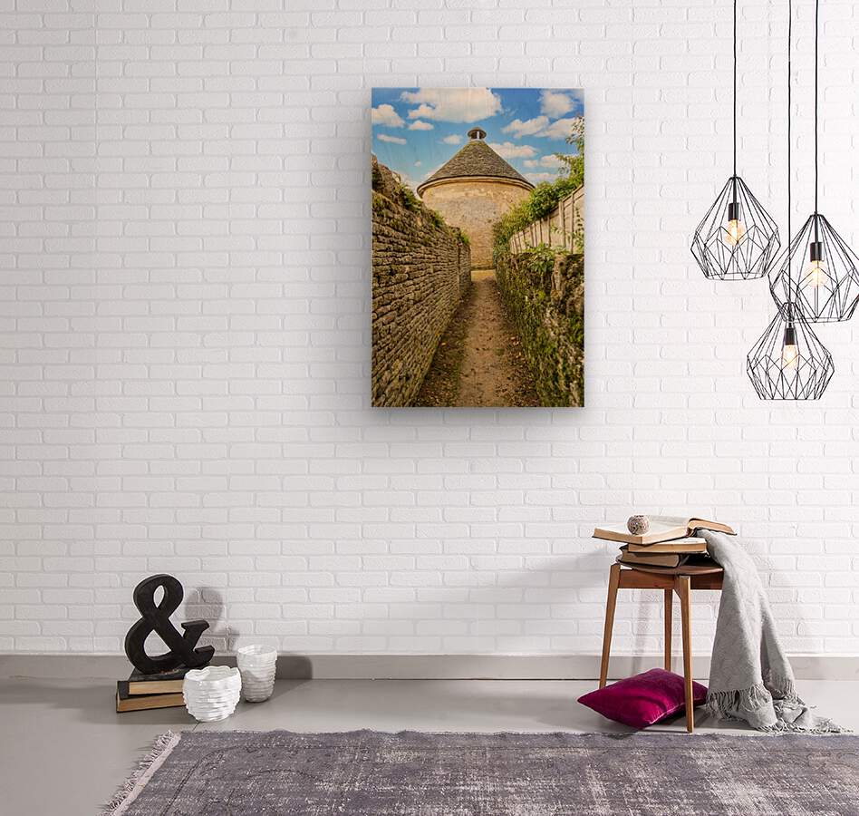 Dovecot of Minster Lovell in Cotswold village with traditional stone walls leading to the old building. This was used to house doves originally.