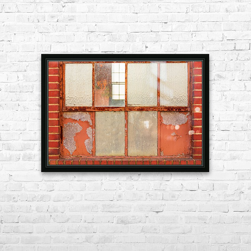 Old rusty window in warehouse painted red and orange Picture Frame Printing
