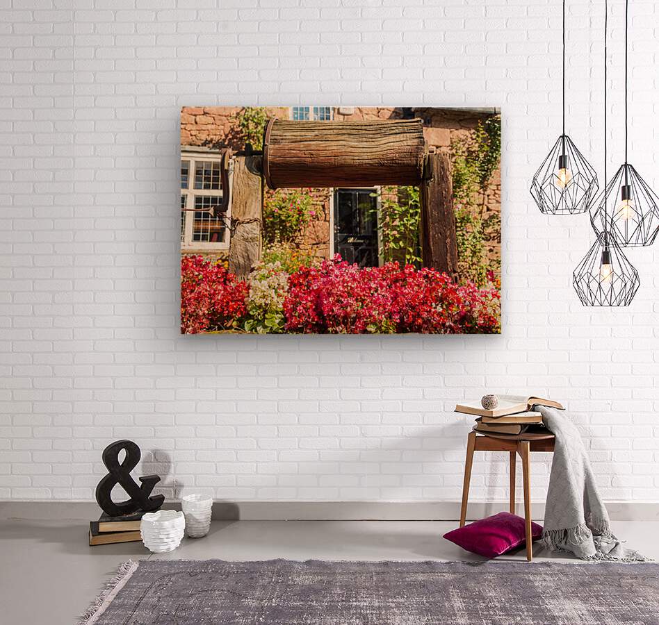 Get this artwork "Wooden well winch frames welcome sign" in a framed print.