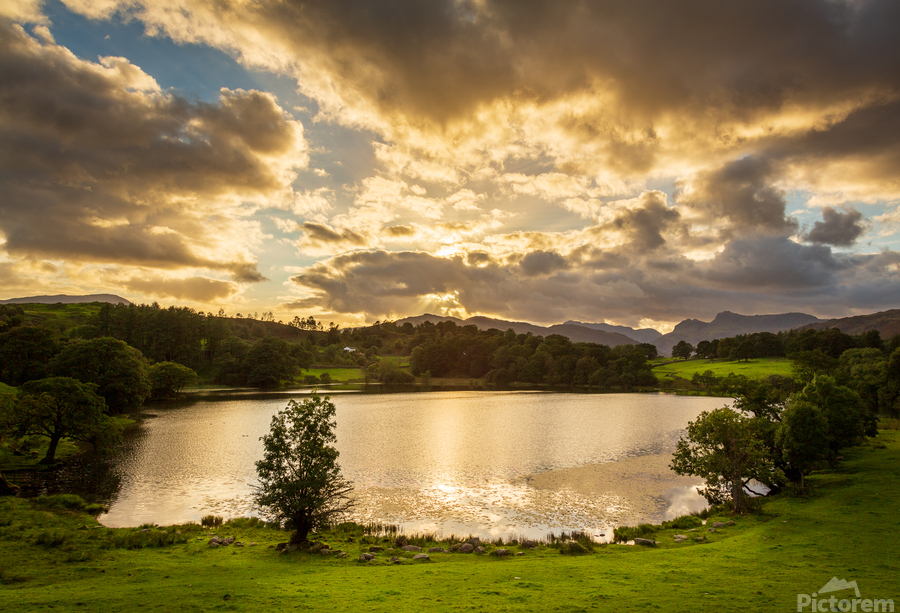 Get this artwork "Sunset at Loughrigg Tarn in Lake District" in a framed print.