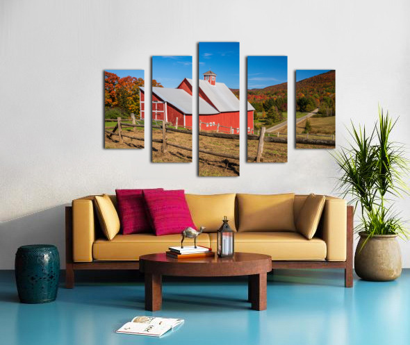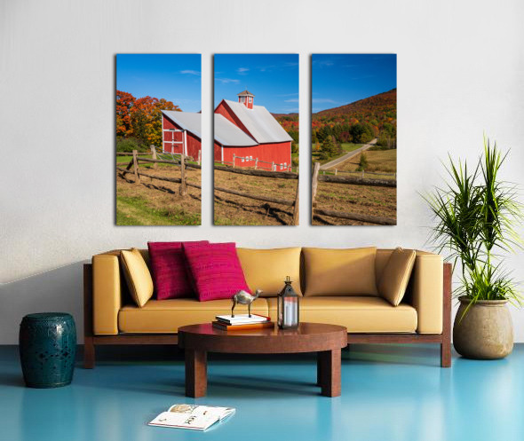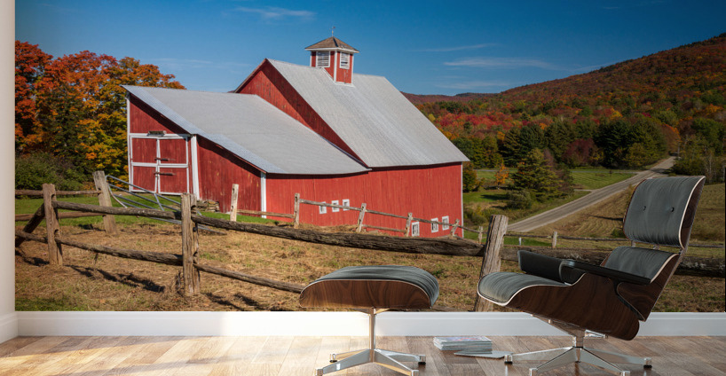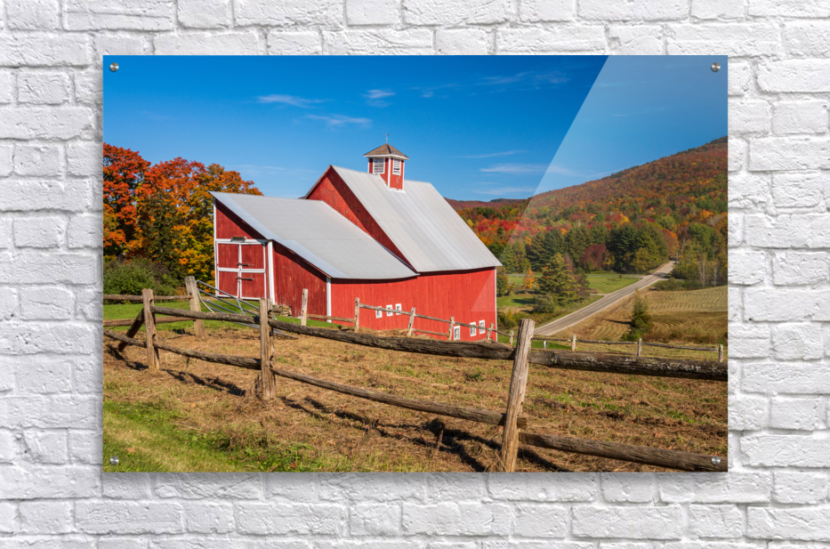 Get this artwork "Grandview Farm barn with fall colors in Vermont" in a framed print.
