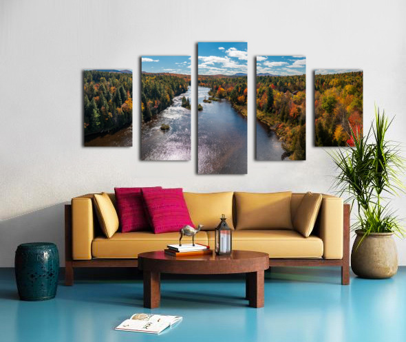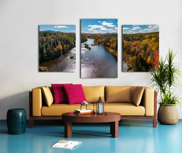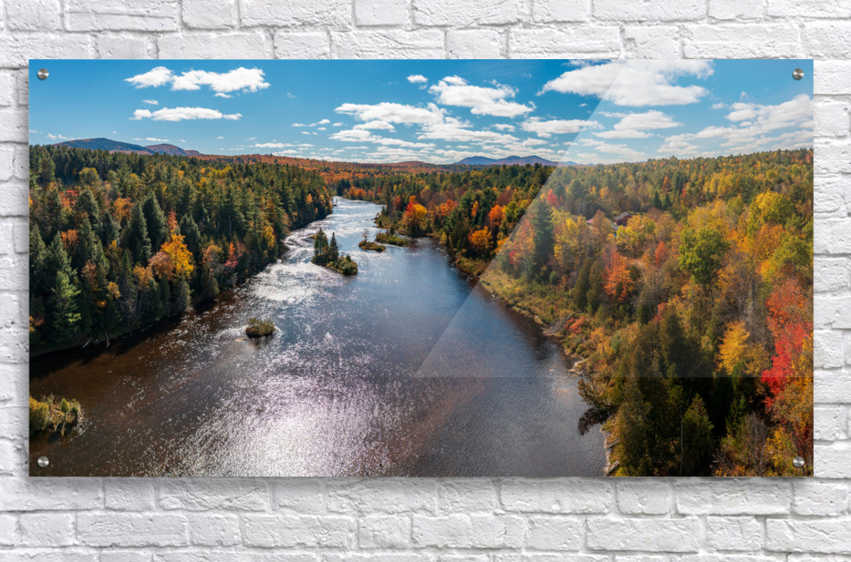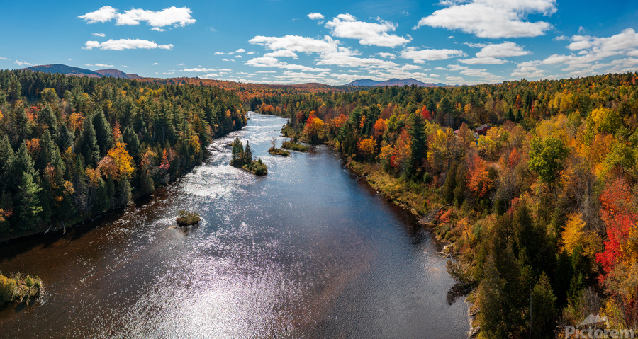 Saranac river flows through multi-colored fall landscape in Adir Picture Frame Printing
