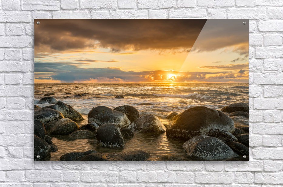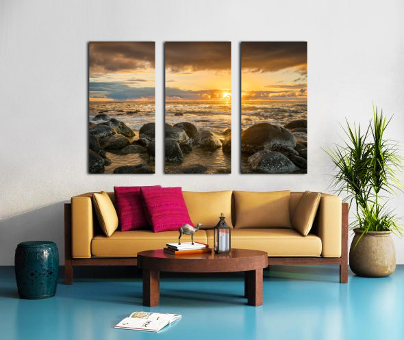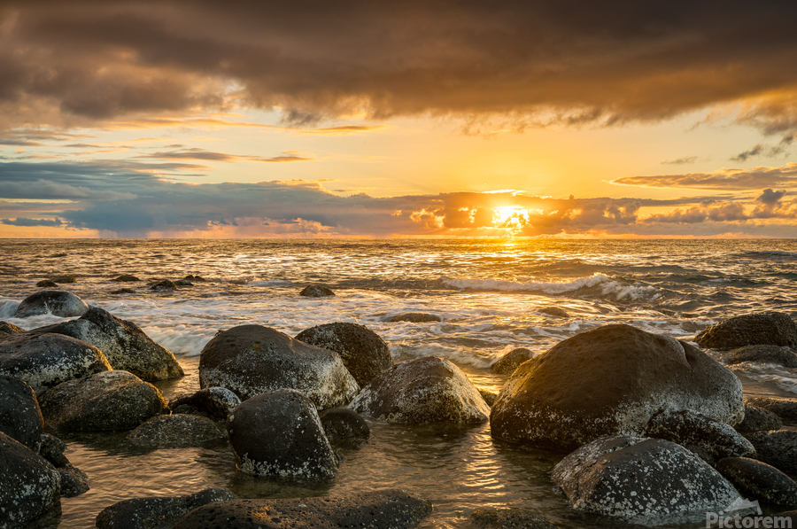 Get this artwork "Sunset over rocks from Kee Beach" in a framed print.