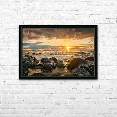 Sunset over rocks from Kee Beach Picture Frame Printing