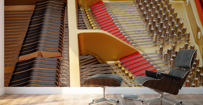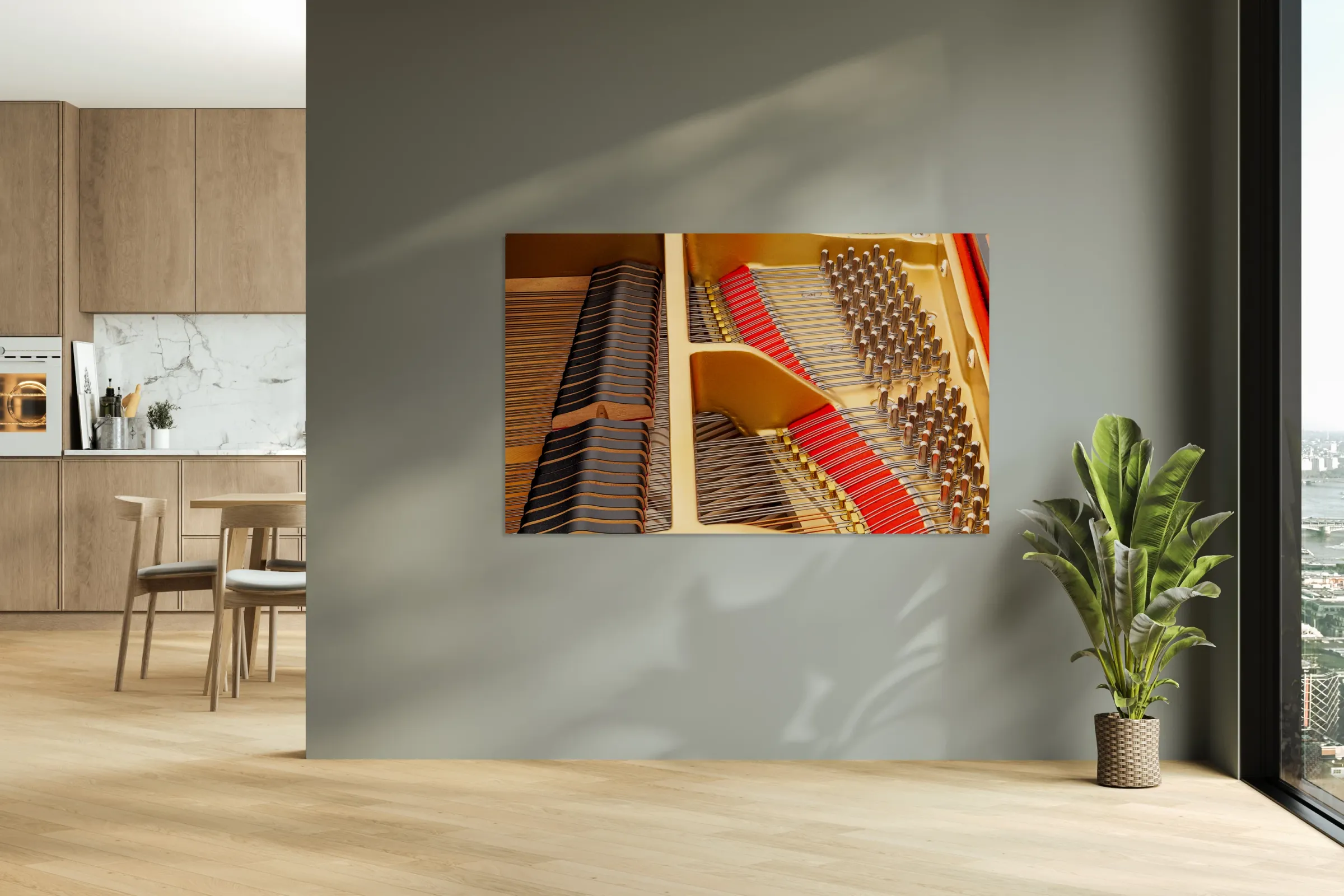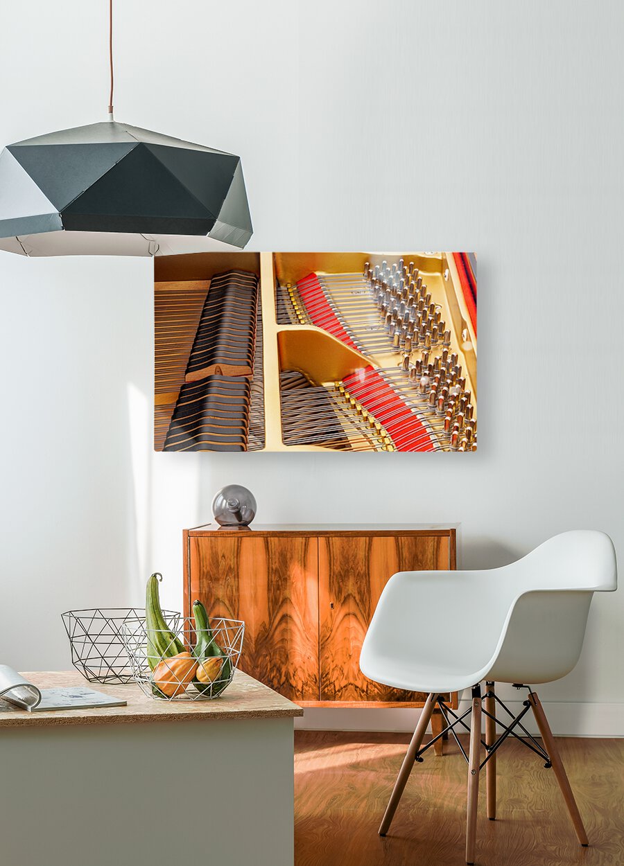 Get this artwork "Interior of grand piano with strings" in a framed print.
