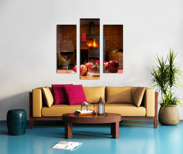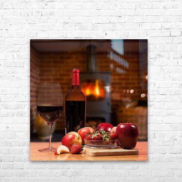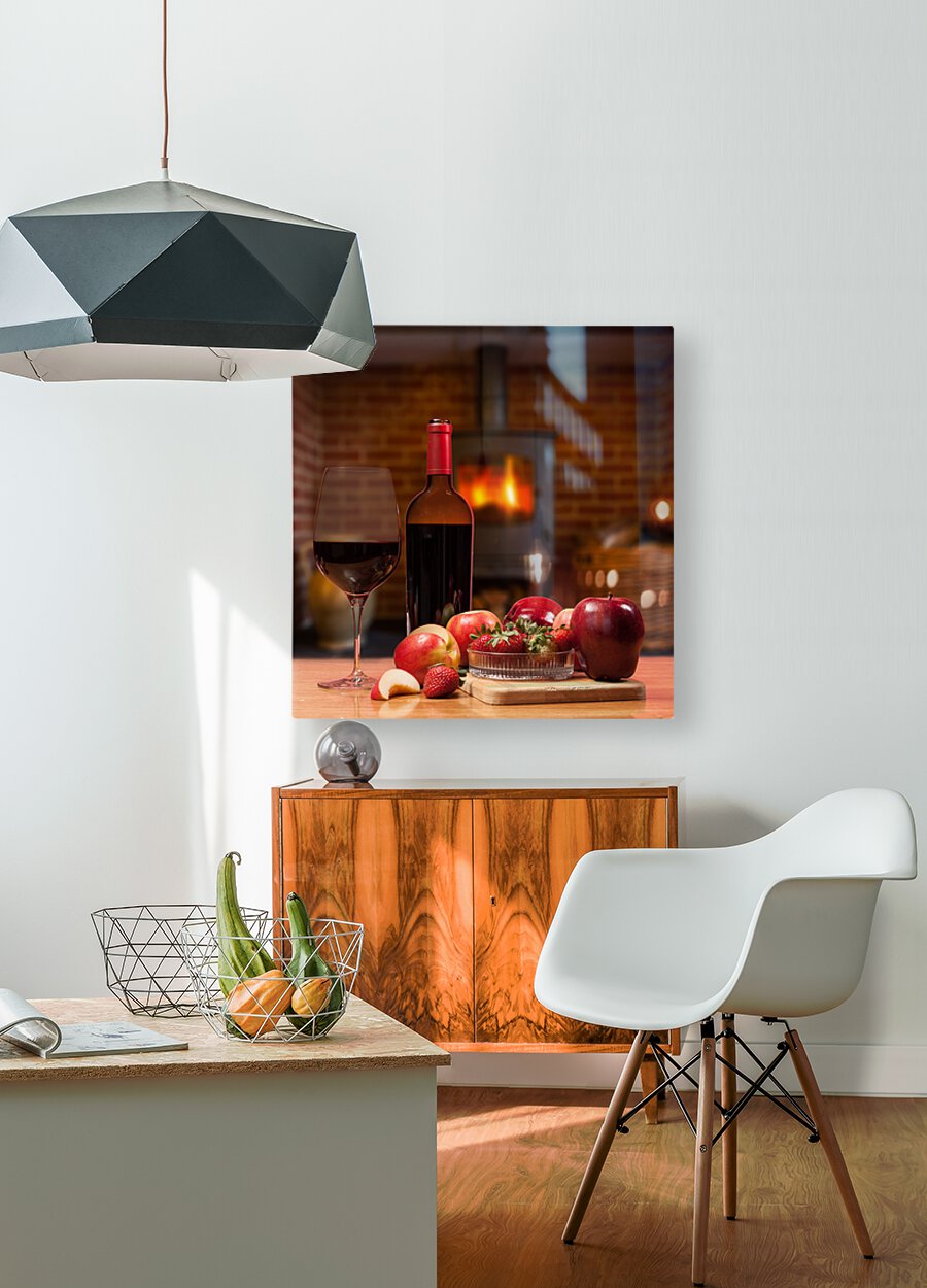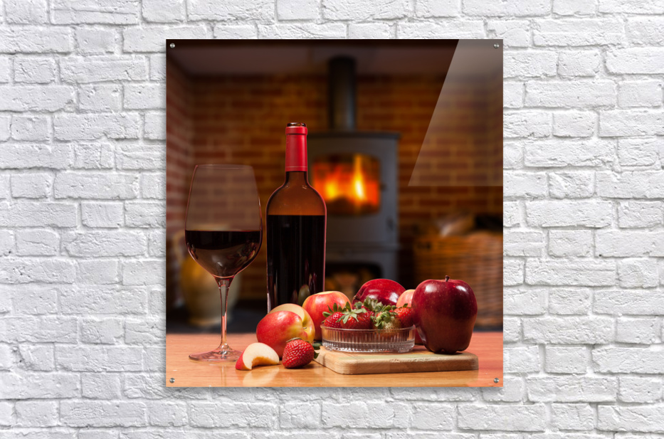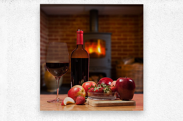 Get this artwork "Red wine bottle and fruit with glass" in a framed print.