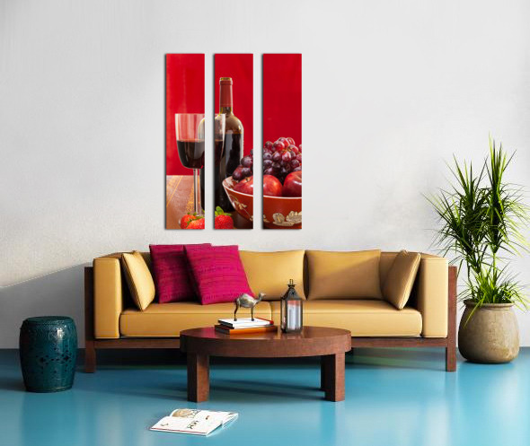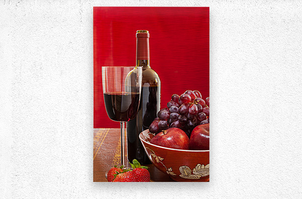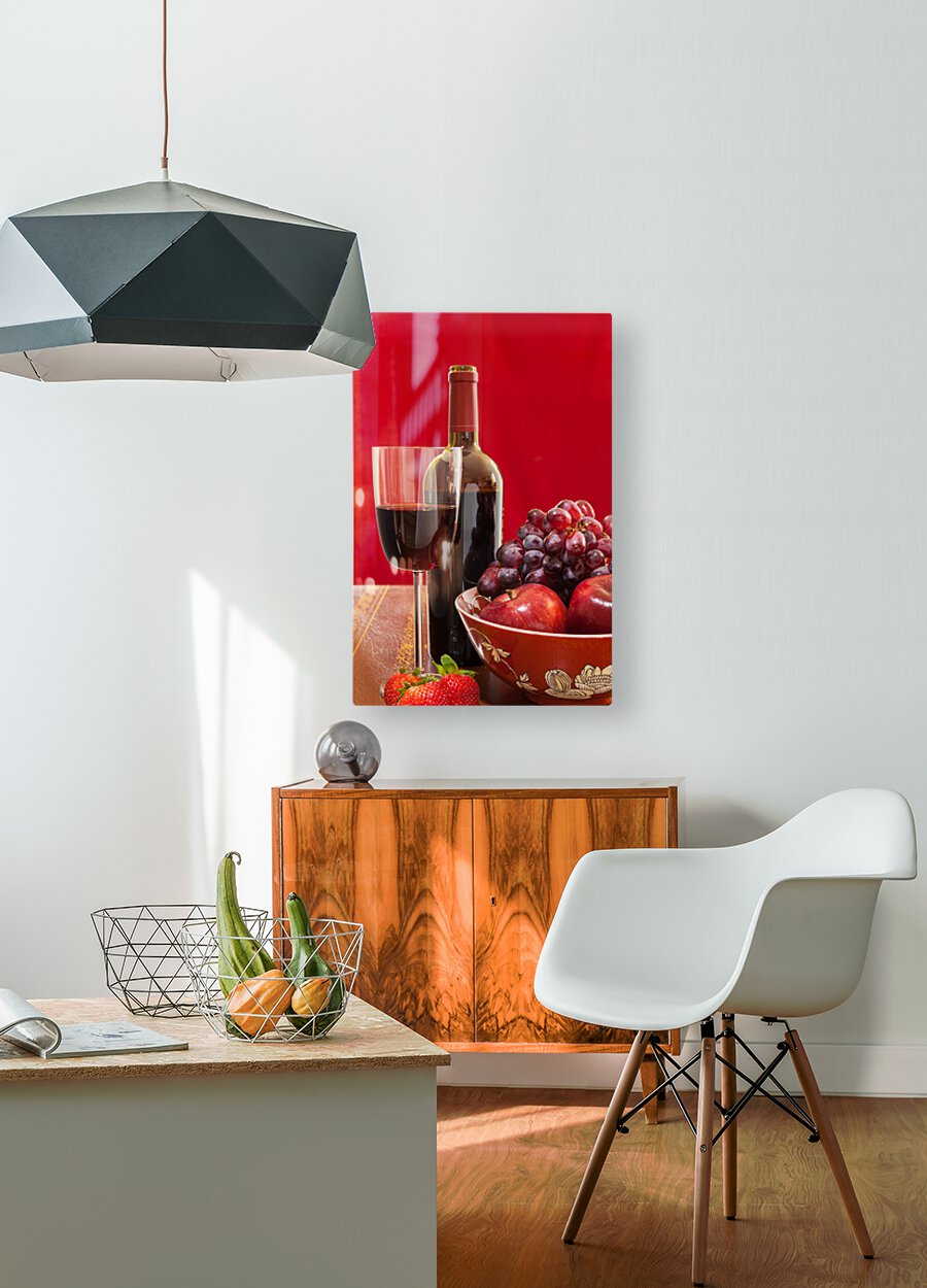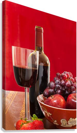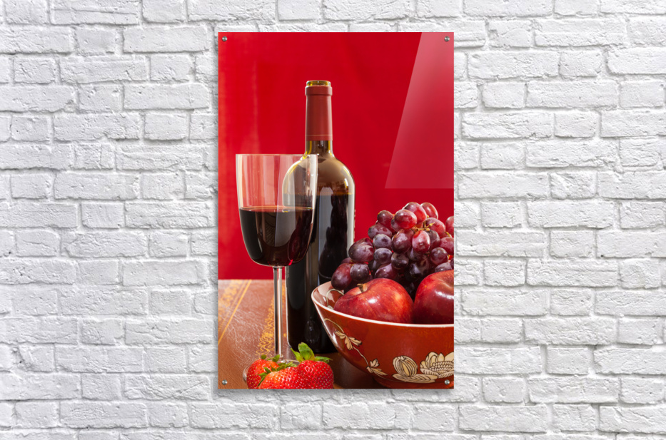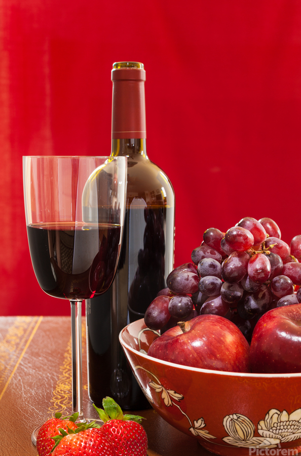 Get this artwork "Red wine bottle and fruit with glass" in a framed print.