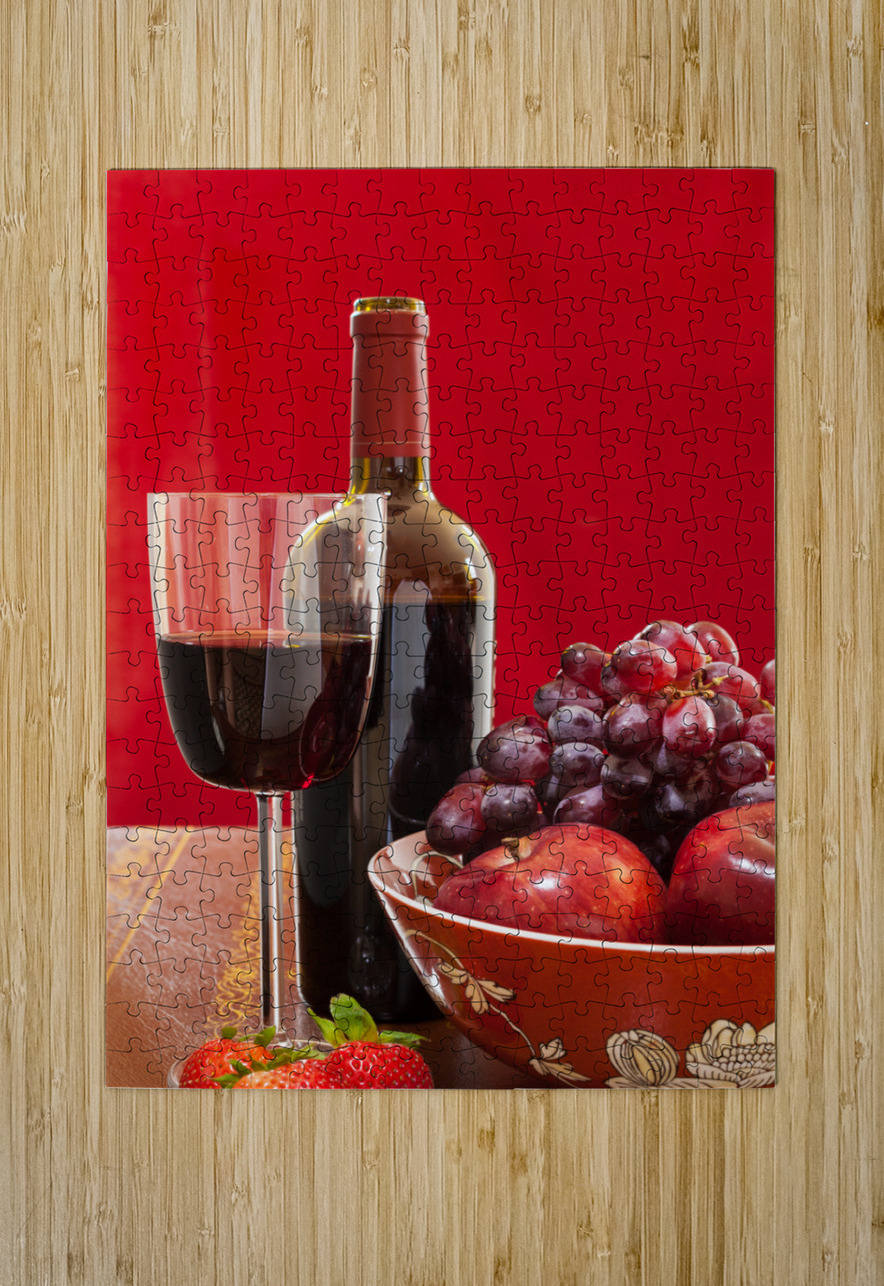 Red wine bottle and fruit with glass Steve Heap Puzzle printing