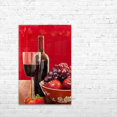 ABOUT THIS ARTWORK: RED WINE BOTTLE AND FRUIT WITH GLASS