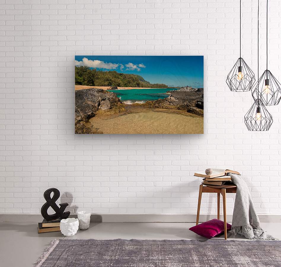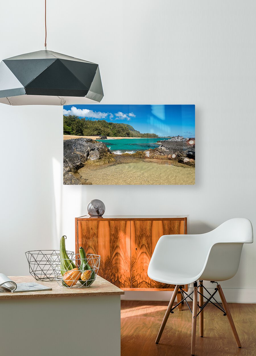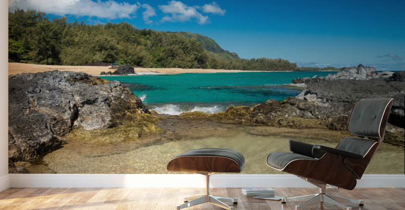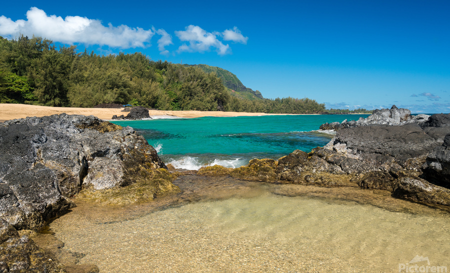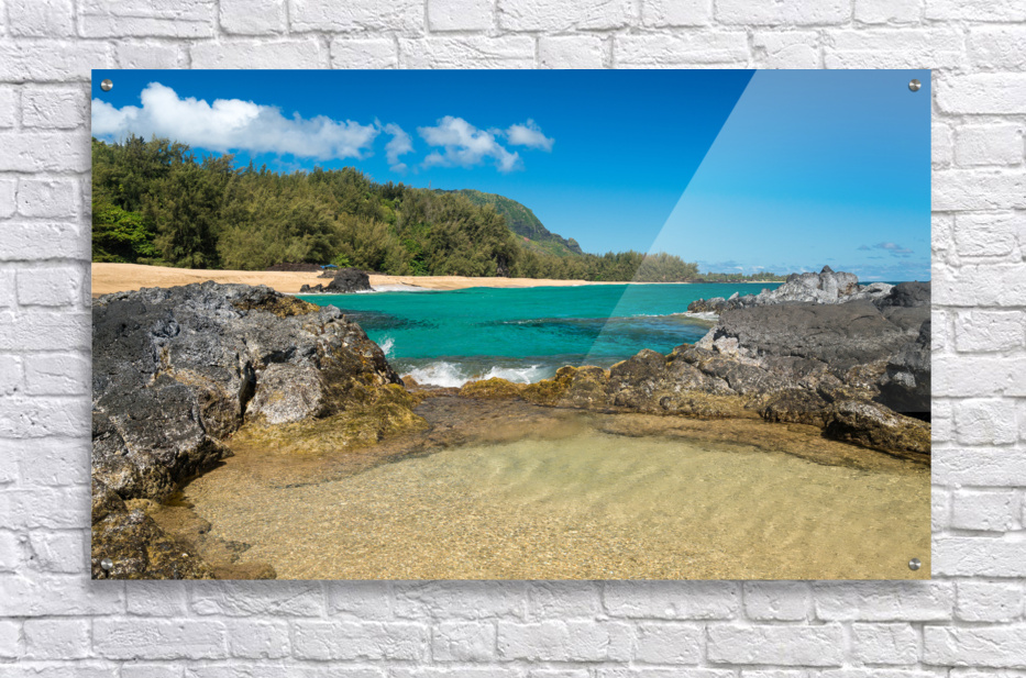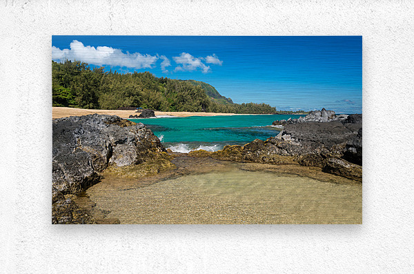 Get this artwork "Lumahai Beach Kauai with waves flowing into pool" in a framed print.
