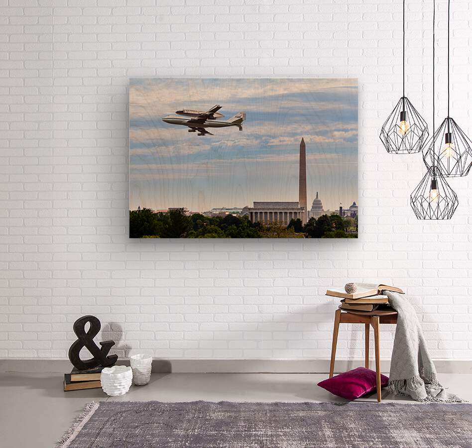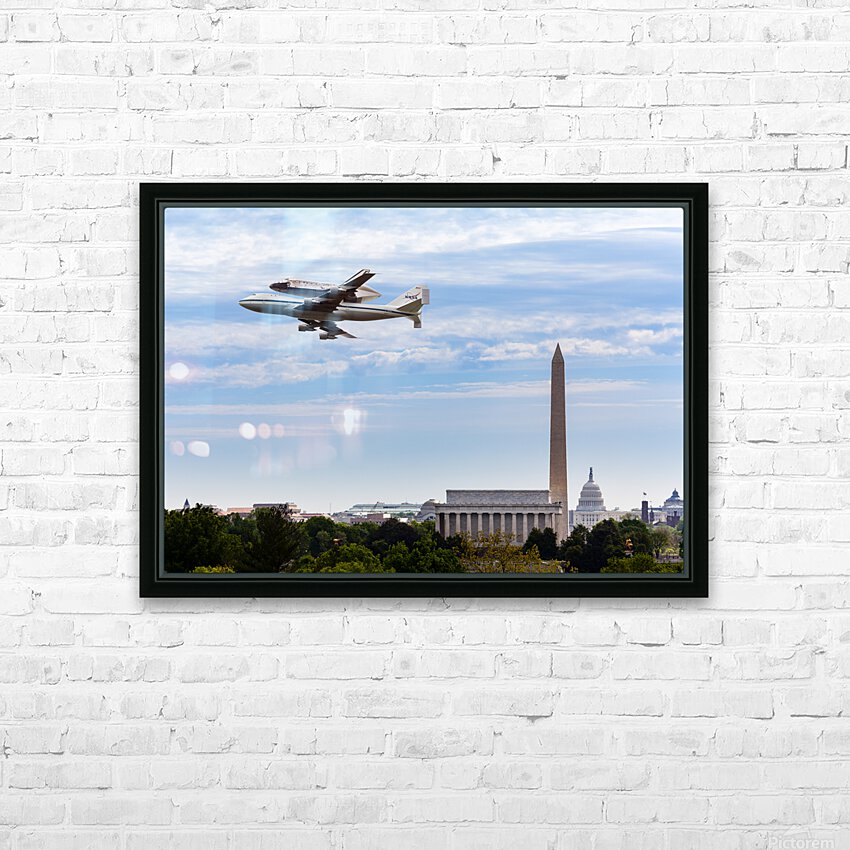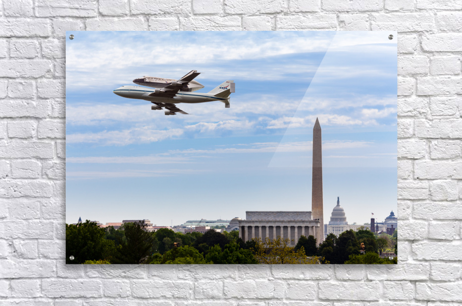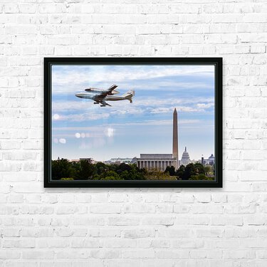Get this artwork "Space Shuttle Discovery flies over Washington DC" in a framed print.