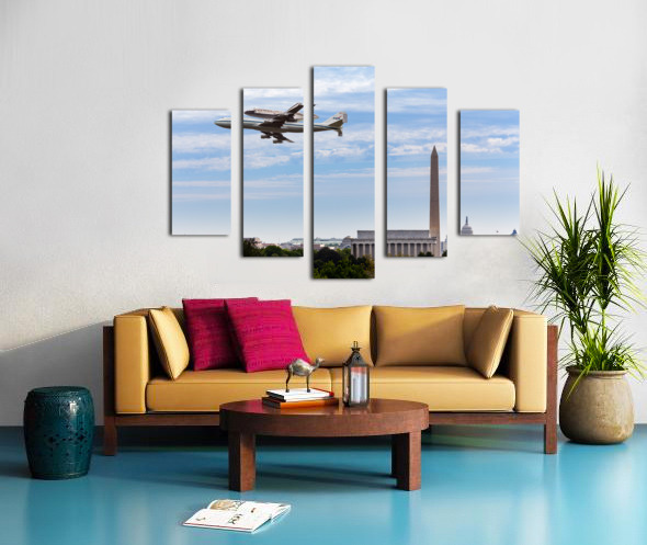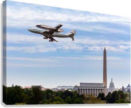 Space Shuttle Discovery flies over Washington DC Canvas print