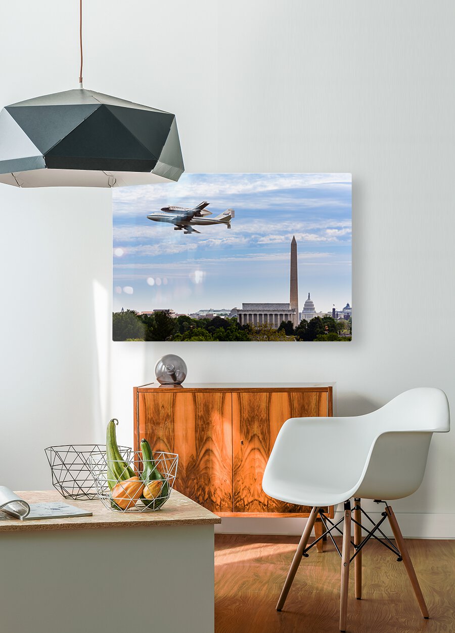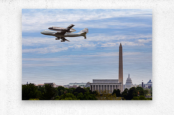 ABOUT THIS ARTWORK: SPACE SHUTTLE DISCOVERY FLIES OVER WASHINGTON DC