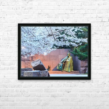 Cherry blossoms and Washington FDR monument Picture Frame Printing