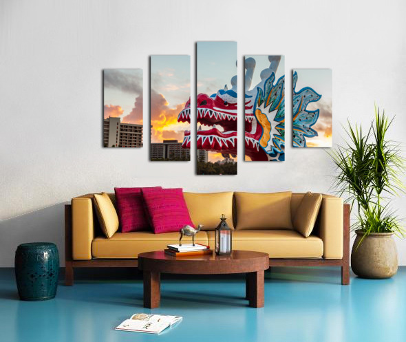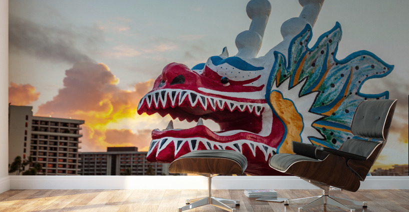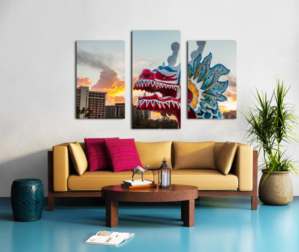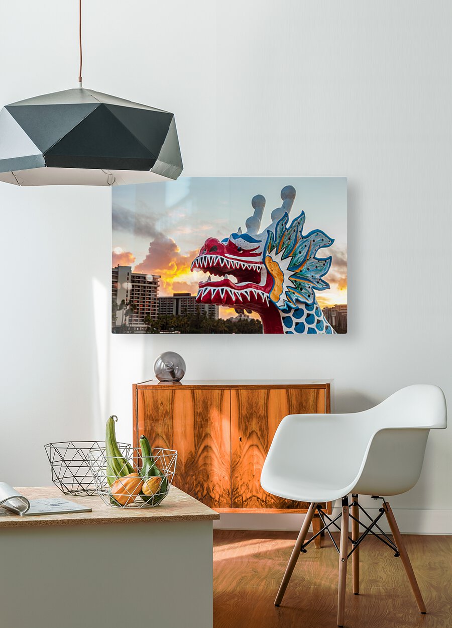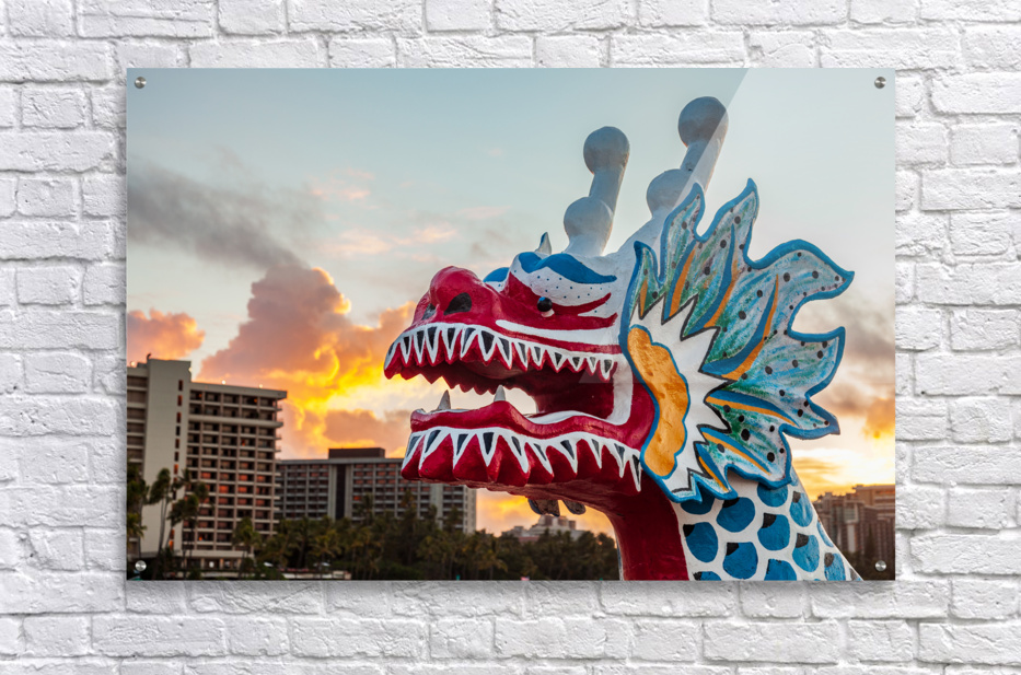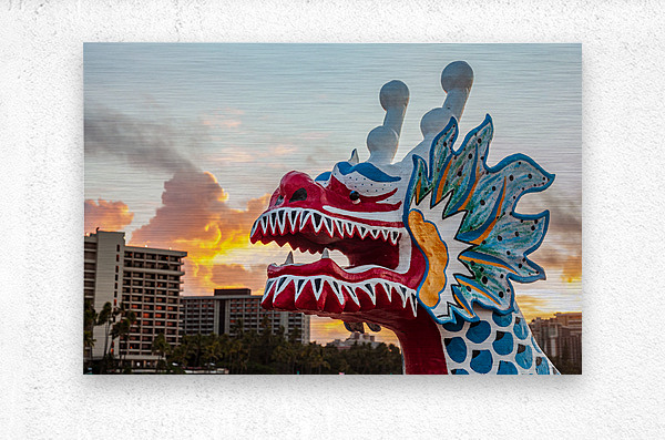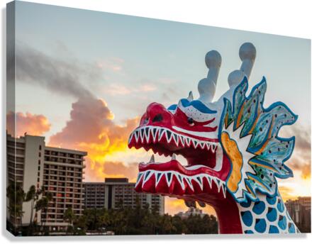 Get this artwork "Carved head of dragon canoe in Waikiki" in a framed print.