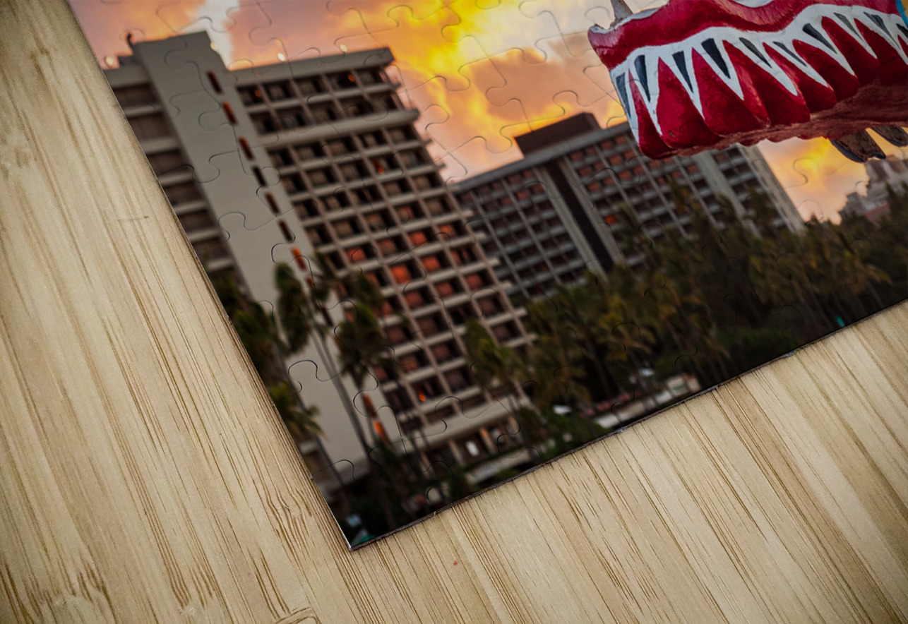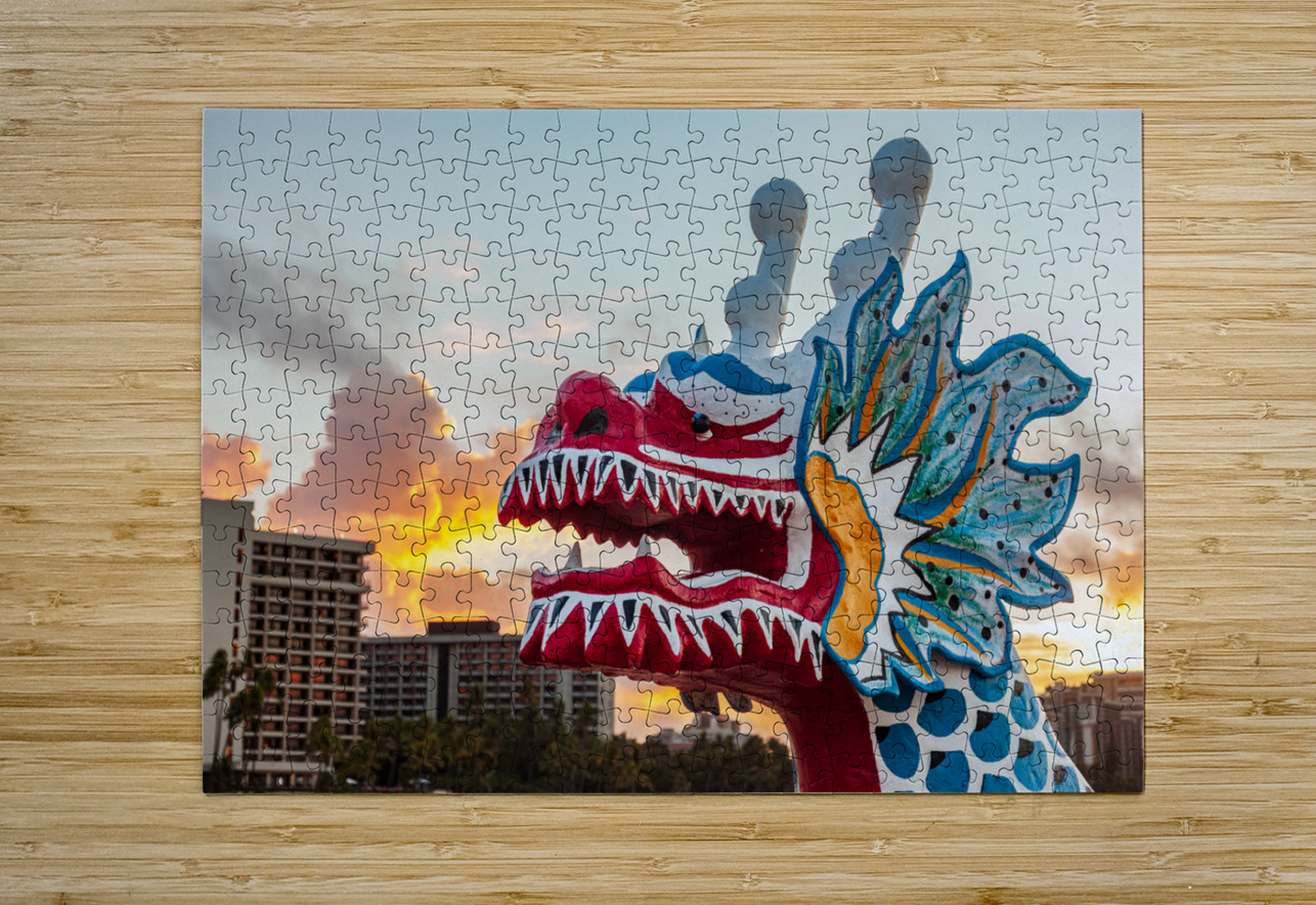Carved head of dragon canoe in Waikiki Steve Heap Puzzle printing