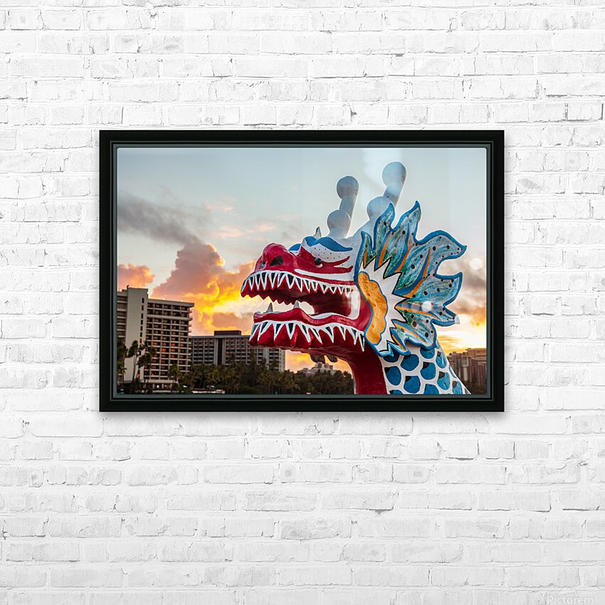 Carved head of dragon canoe in Waikiki Picture Frame Printing
