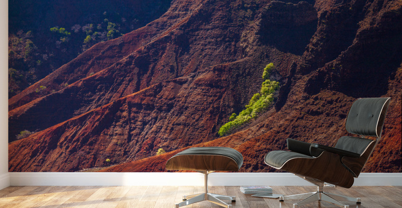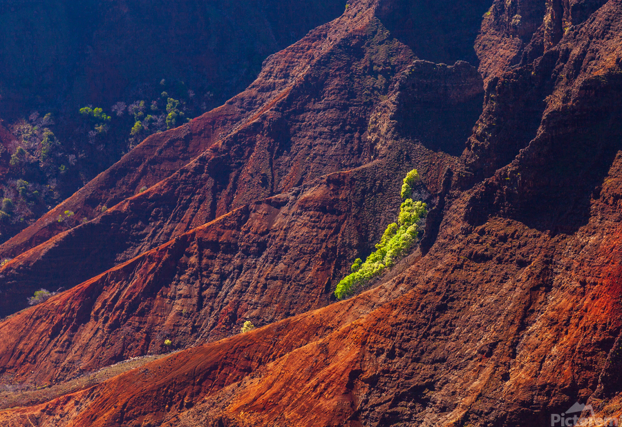 Trees in the bottom of the steep rock sides of Waimea Canyone on Kauai