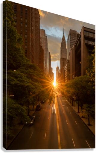 Get this artwork "Manhattanhenge along 42nd street in NYC" in a framed print.