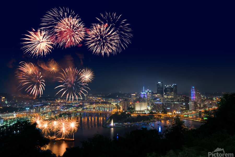 Get this artwork "Fireworks over Pittsburgh for Independence Day" in a framed print.