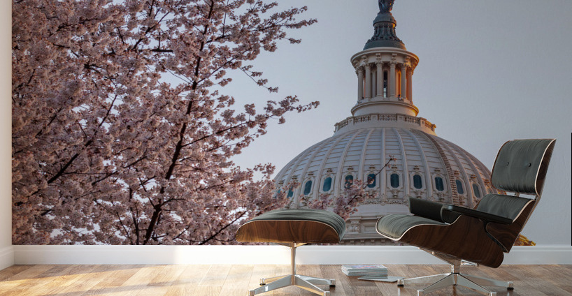 Get this artwork "Cherry blossoms by the Capitol dome at dawn" in a framed print.