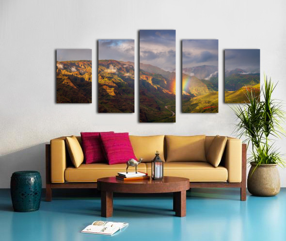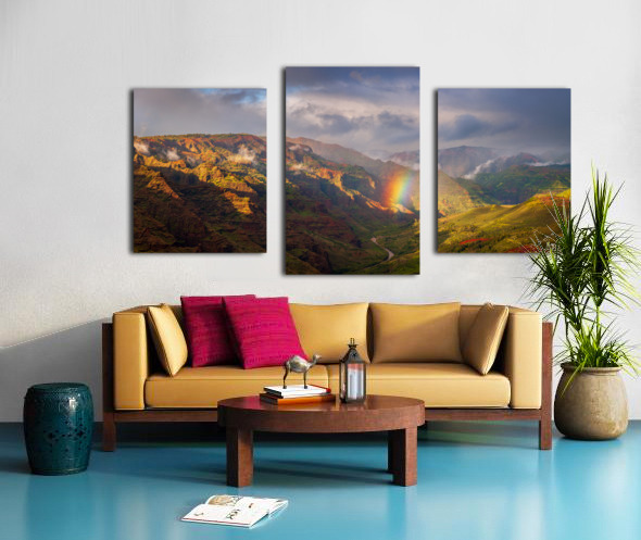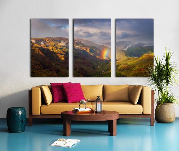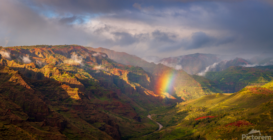 Get this artwork "Dramatic rainbow over Waimea Canyon" in a framed print.