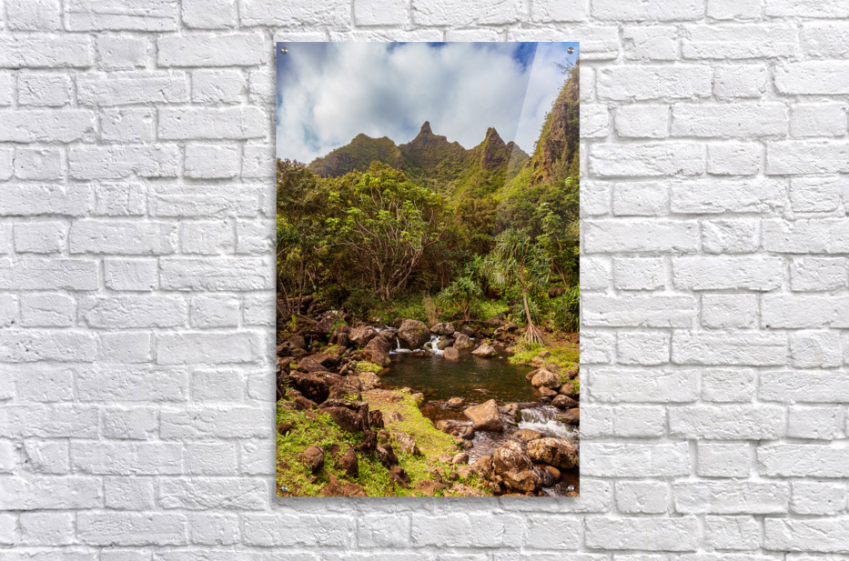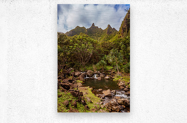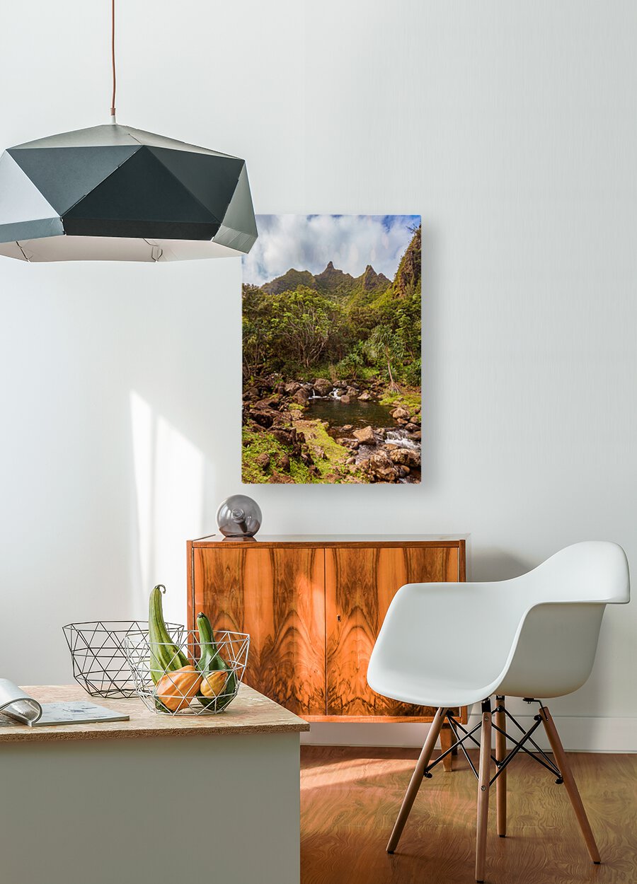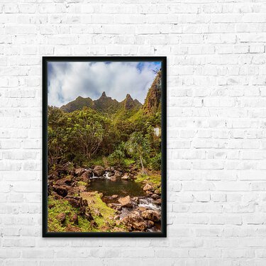 Get this artwork "Jagged peaks above Lumahuli gardens" in a framed print.