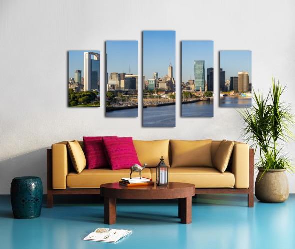 Financial district of Buenos Aires skyline with marina by the entrance to the port