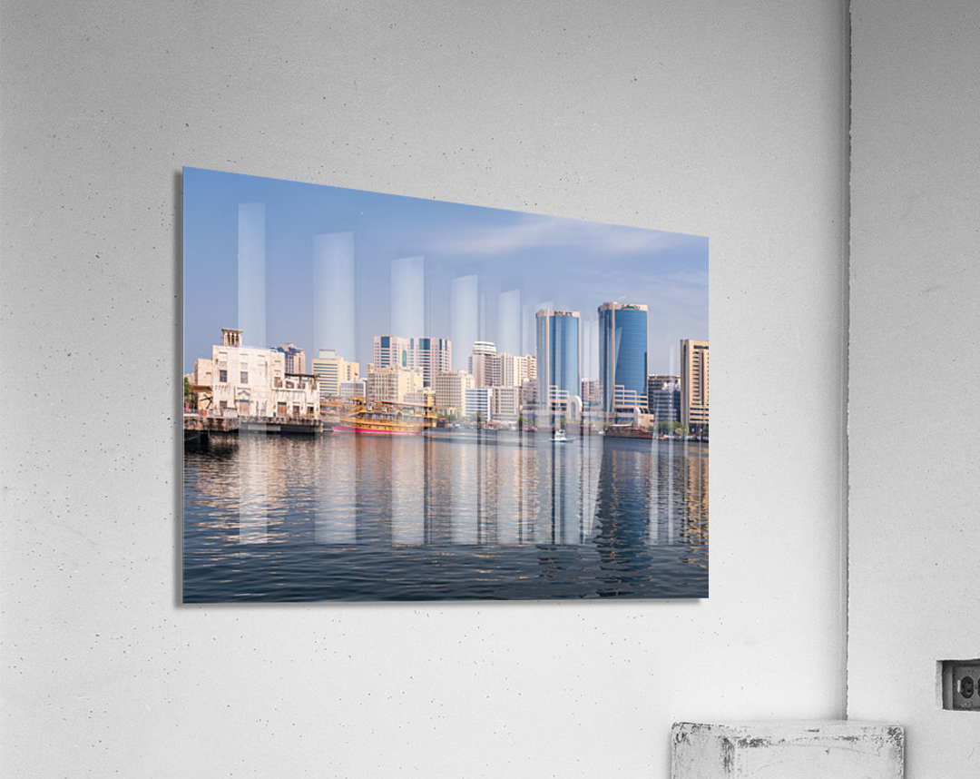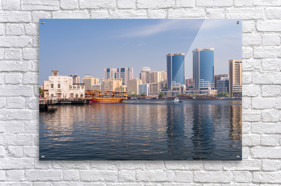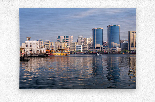 ABOUT THIS ARTWORK: THE CREEK BY BUR DUBAI AND AL SEEF WITH LARGE DOCKED CRUISE BOAT