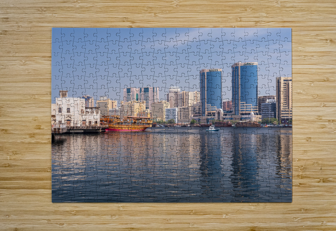 The Creek by Bur Dubai and Al Seef with large docked cruise boat Steve Heap Puzzle printing