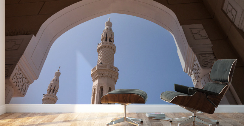 Minarets of the Jumeirah mosque in Dubai UAE open for cultural visits and education for visitors