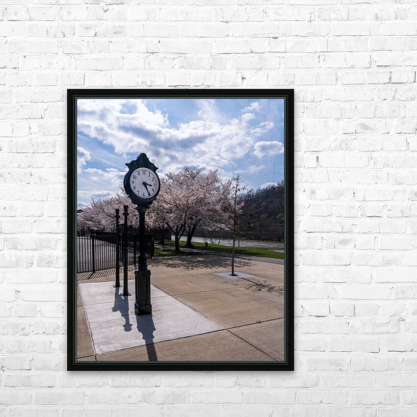 Old fashioned clock by the bike walking trail over Deckers Creek Picture Frame Printing