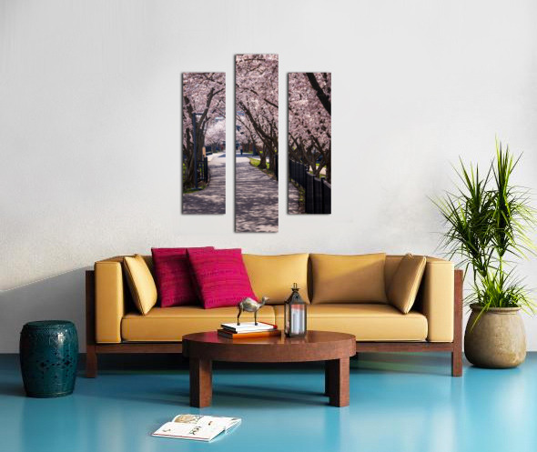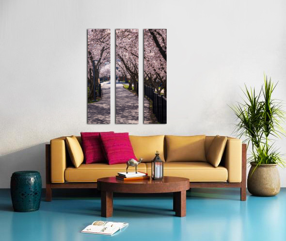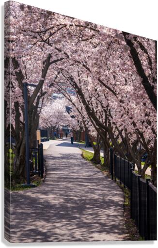 Cherry blossoms over walking trail  by the river in Morgantown W Canvas print