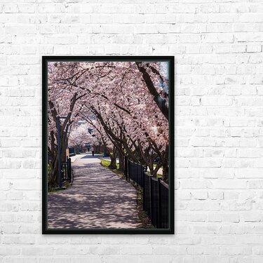 Get this artwork "Cherry blossoms over walking trail by the river in Morgantown W" in a framed print.